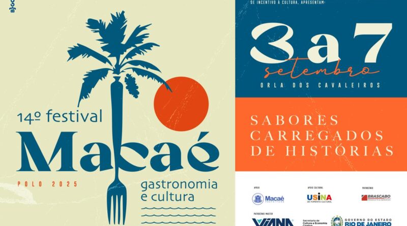 O 14º Festival Macaé Gastronomia e Cultura, com entrada franca, nos dias 3 e 4 de setembro, estará aberto das 18h às 0h; no dia 5, das 18h às 01h; no dia 6, das 12h às 01h e no dia 7, das 12h às 21h. Em breve serão divulgados os pratos especiais, a programação da Cozinha Show e as atrações artísticas. O projeto é patrocinado pela Viana Offshore (patrocinador master) e pela Brascabo Products & Services. Mais informações no Instagram @polomacae.
