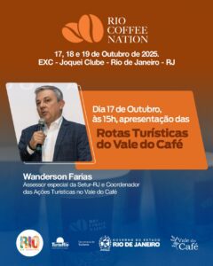 “Com o APL e o Turismo Rural, o Vale do Café ganhou maior destaque, especialmente com as rotas que criamos, por meio de parcerias, unindo as belezas da região com os produtos de qualidade”, disse Wanderson, que fará sua presentação no Rio Coffee Nation no dia 17, às 15h.